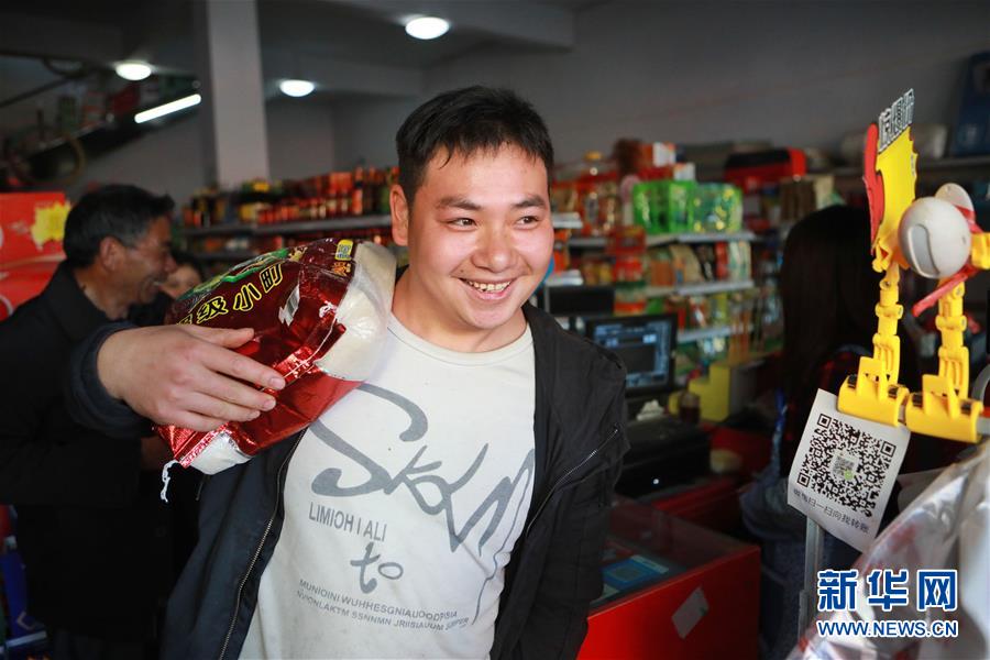 2月6日,赵继才在镇上的超市里购买大米。 新华社记者 欧东衢 摄