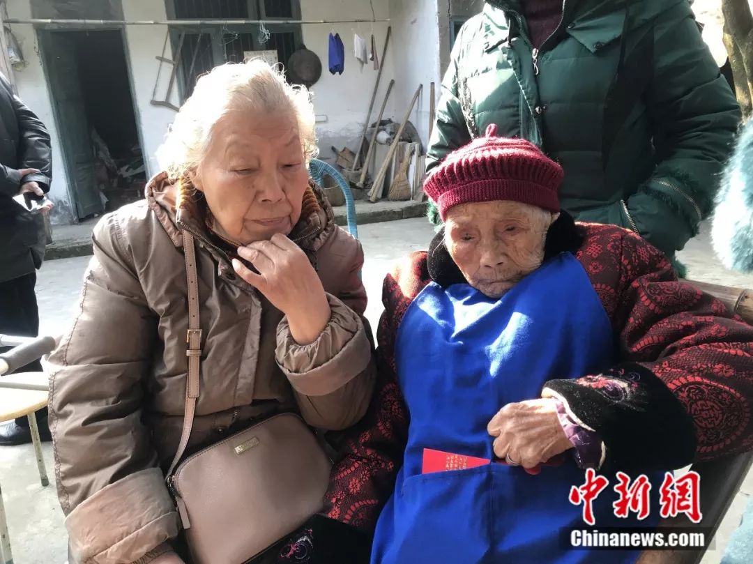 在今年拜年的晚辈中,还有一位白发苍苍的老人。老人一来拜年,就紧挨着朱郑氏坐着,她叫王曹群,今年也有80多岁了。王曹群的母亲是朱郑氏的妹妹,自从母亲去世后,王曹群就把朱郑氏当做自己母亲一样尊敬。