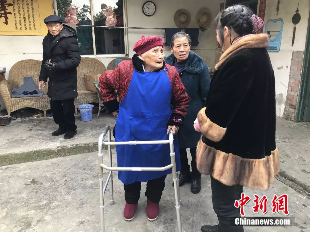 陈玉华记得,朱郑氏前几年还能坚持每天割猪草,打扫院坝,每天吃了早饭都要出去转圈,看看谁家需要帮助,自己就要去出一份力。2015年的时候,老人因为摔了一跤,住进了医院。自从摔跤之后,割猪草扫地的活不能做了,但靠着一张支撑椅,还能每天早上在家附近转圈。