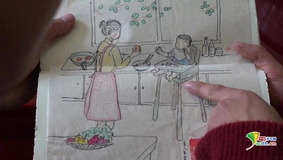 “每次妈妈叫豆豆喊爸爸,他都会喊,然后听到他这样喊的时候就感觉什么都不重要了,都感觉都值了。很多时候不能陪伴她在身边,这个时候就感觉挺对不起她的。”曾诚翻看着妻子亲手画的“一家三口在拉萨”,泪水在眼角滑落。