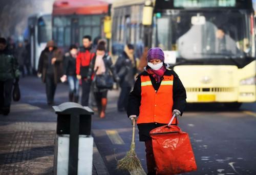 大学生“争抢”事业编制环卫工,一名研究生学历的环卫工人在巡街保洁 王建威 摄