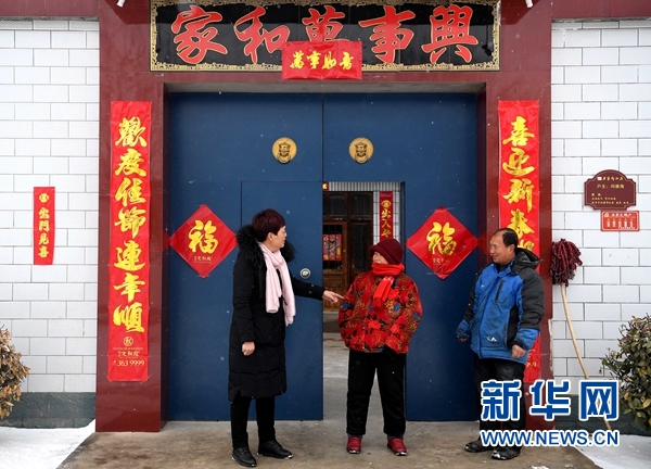 新春刚过,瑞雪降中原。一片银装素裹间,一个暗红色的门楼上“向阳庄村”几个金色大字格外醒目,门楼下葛树芹正一边扫雪一边大声地和村民们聊着天,欢声笑语间满满的是幸福年味。