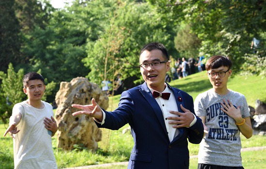 清华大学两名博士生在清华园“情人坡”上演了一场浪漫的求婚。很多同学现场助阵。视觉中国供图 (资料图片)