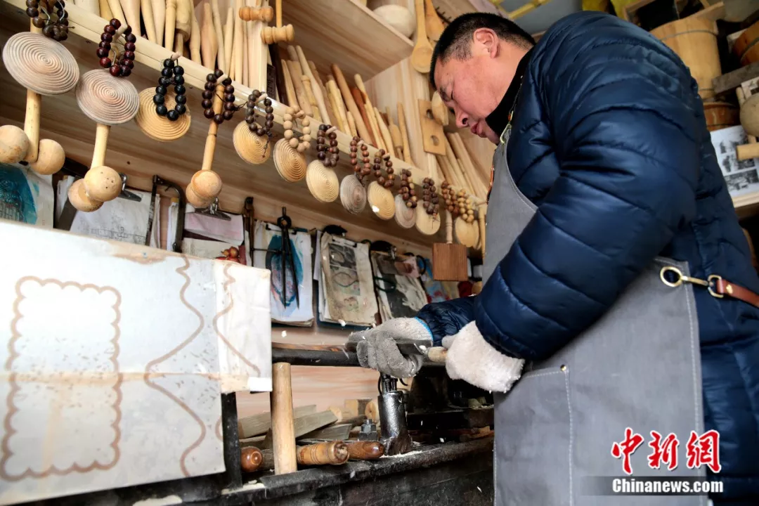 杨宝林十几岁便开始跟父亲学习木制品制作
