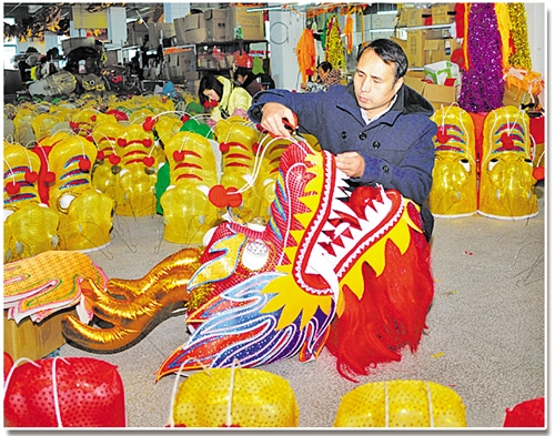 史克滨正在整理即将出厂的“城南龙灯”。本报记者 刘 兴摄