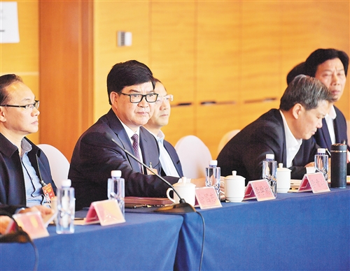 3月4日,李学林委员(左二)认真听其他委员发言。