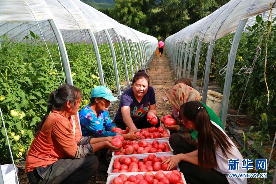赵会杰在蔬菜大棚了解西红柿的生长情况(资料照片)。 新华社发(李国志 摄)