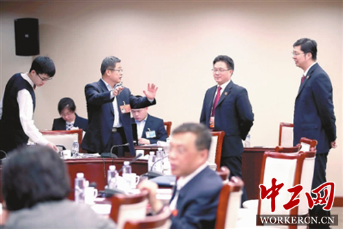 “我有一个建议。”3月13日下午,在山西代表团小组审议两高报告会议间隙,山西省市场监督管理局副局长李志强代表(左二)对前来旁听的最高人民检察院的工作人员说:“有些案件的数据都是高检和高法从各自角度出发统计出来的,对比着看两高报告,有些数据就不是很全面。我建议两高报告中的核心数据统计标准应该统一,这样才能看得一目了然。”