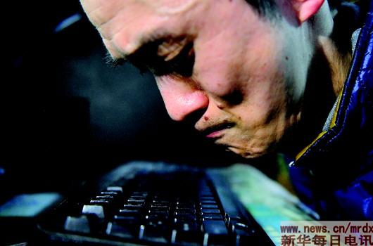 陈伟起在电脑前打字(3月5日摄)。 记者 李嘉南 摄