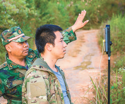 赵平(左)和同事在监测野象活动。郑璇 摄