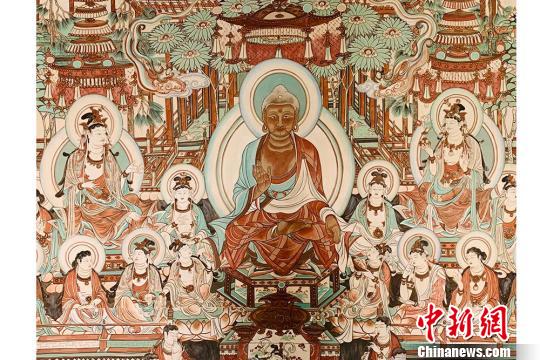 图为宋明尚临摹的榆林窟第25窟观无量寿经变画。 高康迪 摄