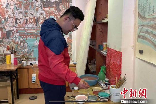 “不少人认为临摹就是照着画,其实不然,画是有‘生命’的,而画的‘生命’就是作画的人赋予的。”27岁的兰州小伙宋明尚2015年大学毕业后去了敦煌,被莫高窟壁画所吸引。