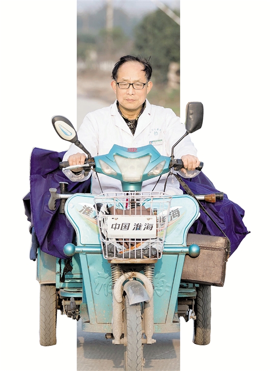 1月22日,史伟兵骑着三轮电瓶车去为村民看病。 新华社发