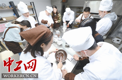 大龄孤独症患者在“天真者的绘画”工作室接受烘焙培训。工人日报—中工网记者 吴凡 摄