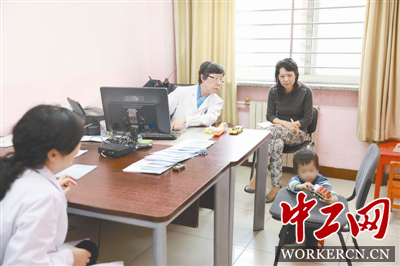 贾美香医生在为来自全国各地的患儿做诊断。 工人日报—中工网记者 吴凡 摄