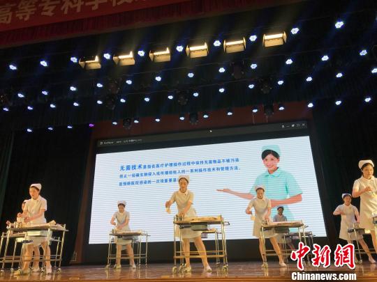 图为漯河医学高等专科学校护理系学生展示职业技能。 韩章云 摄