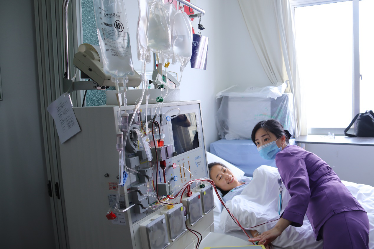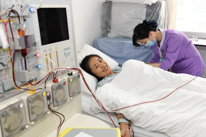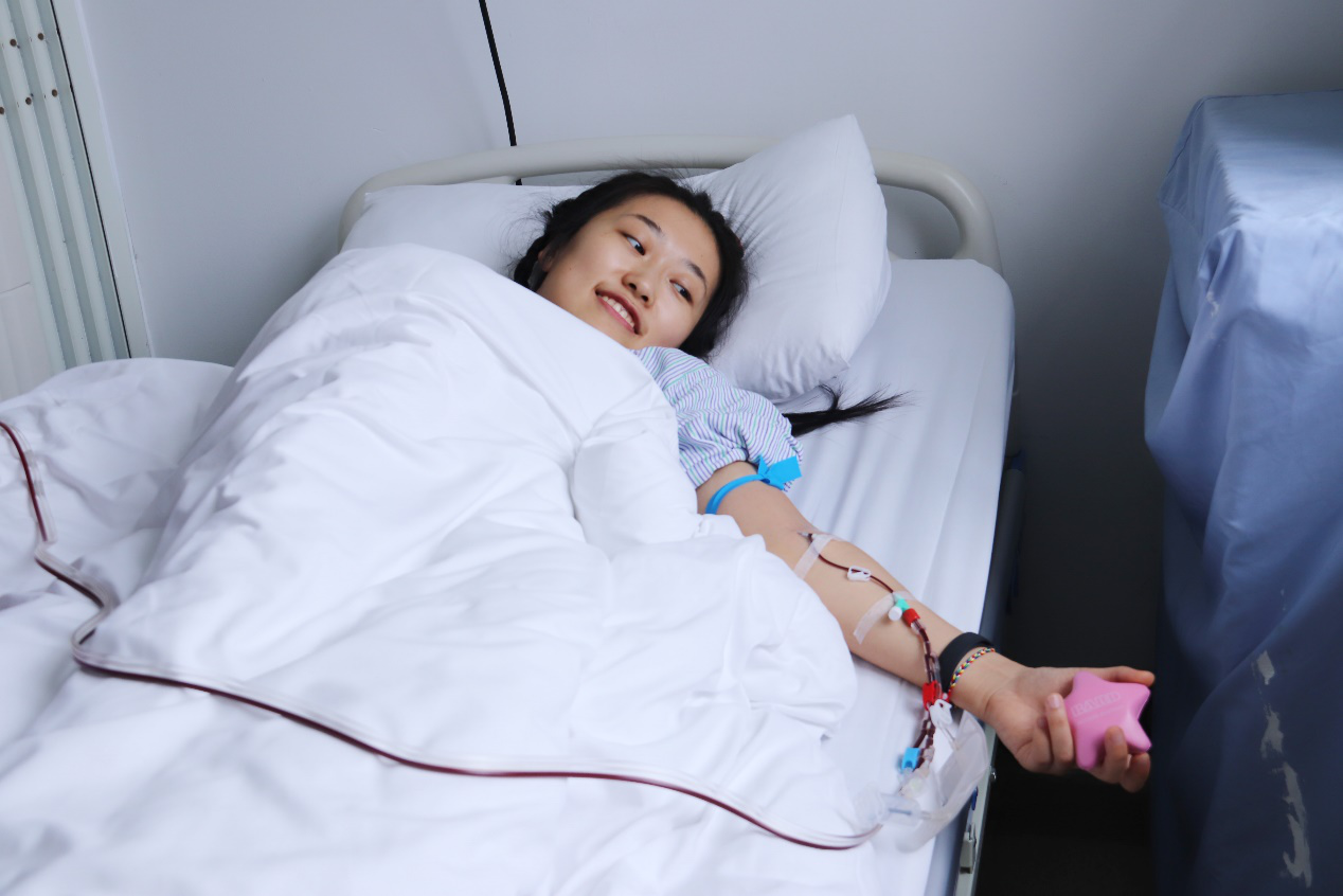 躺在病床上的她面带笑容,手中握着粉红色的“星星”不断按压,鲜红的血液顺着长长的管道流进一台正在运转的血液分离机,为另一个生命带去生的希望。