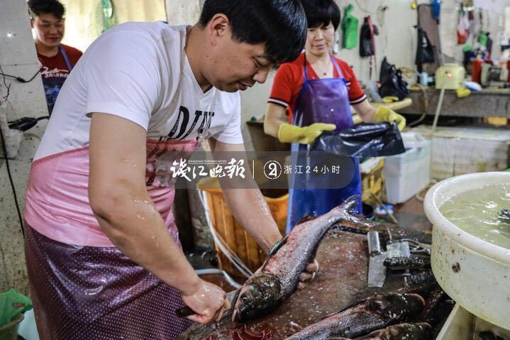 “帮我挑一条鲫鱼”,“给我来一个大鱼头”……孙勇的水产摊是杭州某农贸市场里生意最好的。