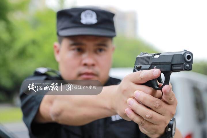 “我们携带的手枪重约2斤,击发手枪时产生后坐力就像被人猛地推一把。巡逻时,手持的钢叉、盾牌等装备约20斤,每天在路面巡逻大概8小时。”