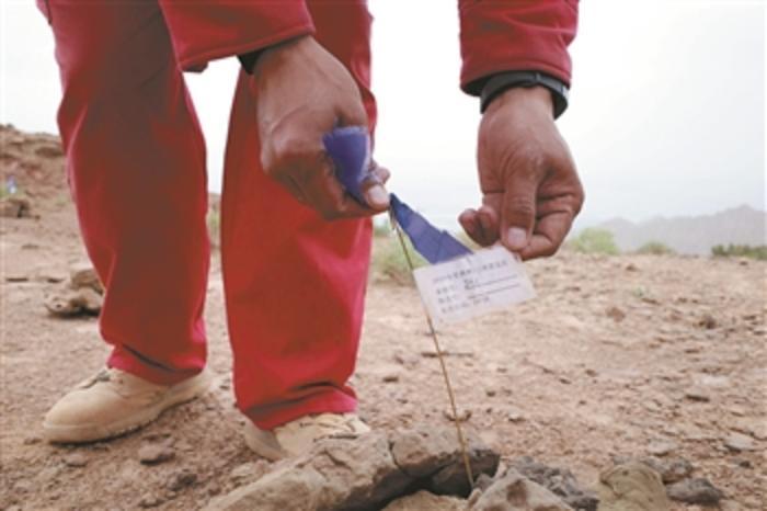 直到采访结束,记者也没有和正在山尖上施工的工人说过一句话,因为在这里能一脚一脚爬上刀片山的,只有物探工人。