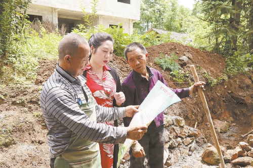 全国人大代表冉慧(中)走进村寨向百姓宣传环境保护方面知识。