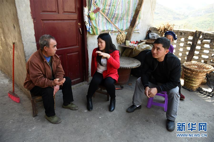张兴燚(中)在村民家中了解生产生活情况(3月21日摄)。 新华社记者 杨文斌 摄