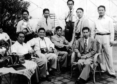 1955年,钱嗣杰(后排右二)与参加万隆会议的外国记者在一起。
