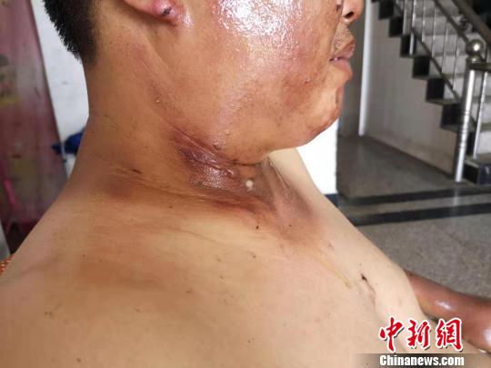 胡孝钦因救火身体多处被烧伤。 肖未提供 摄