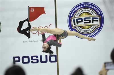 戴大丽在IPSF第二届中国钢管运动锦标赛上作为表演嘉宾进行压轴表演