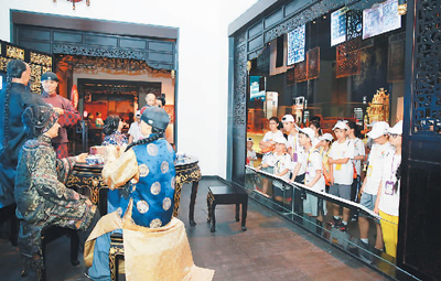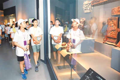 近日,2019东阳籍海外华裔及港澳台地区青少年“中国·东阳寻根之旅”夏令营开营。本次夏令营的营员包括了来自美国、加拿大、日本等国及香港地区的26名东阳籍海外华裔及港澳台地区青少年和部分学生代表。图为营员参观“中国木雕博物馆”。