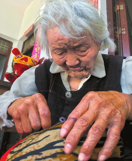 ◆95岁高龄的王福秀婆婆,20多年来用一手漂亮的手工活,养活了女儿一家,还帮女儿家修起了房子,还清了债务。