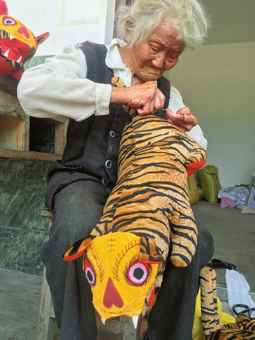 刚搬进三女儿家时,王婆婆已快70岁,“那会已做不动农活了,根本不知道该如何帮女儿。”王婆婆说,她后来到一个亲戚家里看到一个布老虎,便有了做布老虎挣钱的想法。