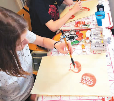 崔西娅在中东欧孔子学院夏令营的国画课上画石榴。