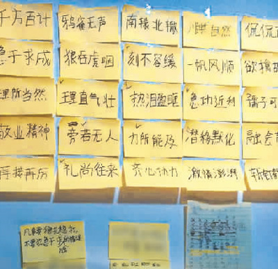 这些都是柳炫守在做模拟试卷中总结出的经验。在他每次完成限时模拟考试后,不会立刻去订正答案,而是对着答案再重新看一遍试卷,从答案中分析出题思路。“我总结了一些汉语水平考试的规律,像固定搭配、成语使用通常是必考的。同时,我会把这些要点写在便利贴上再贴到墙上,以便随时都能看到。”柳炫守说。