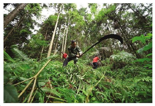 6月26日,今年71岁的老共产党员杨代林带领乡亲们像往常一样,在自己精心培育了37年的贵州省黔东南苗族侗族自治州榕江县7万亩林场内,一边巡查,一边清除杂草。