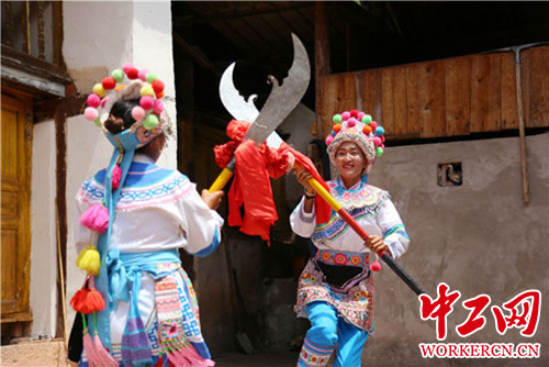 引导老百姓在保护、传承的过程中,鸡街乡将大刀舞与当地地域特色结合起来,发展民族文化产业及乡村旅游,带动乡村振兴。