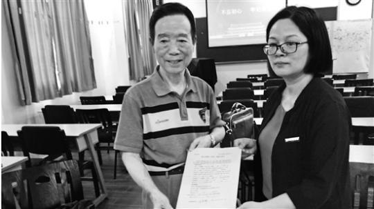 签字当天,由于身体原因,王德琳没来,沈慧麟一人到场。沈老个子不高,一只黑色皮包斜挎着,一身灰色衣裤干净整洁,大步走进教室。