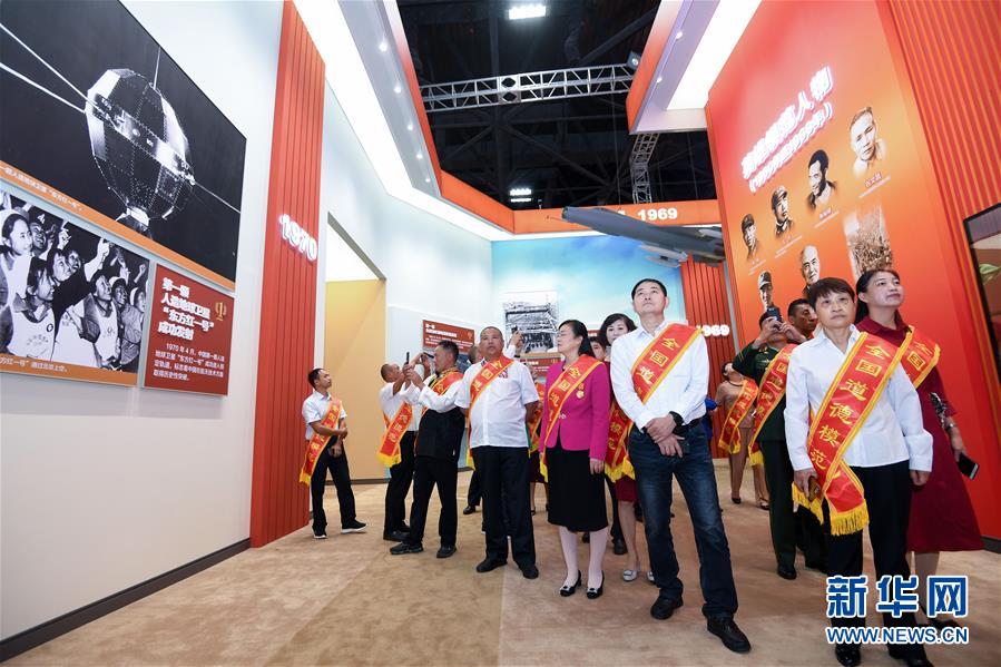 9月24日,英雄模范和先进典型代表在参观成就展。新华社记者 陈晔华 摄