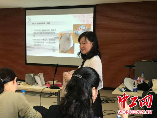 彭莹介绍道,武钢耐火材料公司工会、宝武武汉总部工会积极创造条件多次邀请她举办这样的培训,既宣传推介了她的工作室,也吸纳更多有兴趣从事手工制作的下岗女工加入到她的团队。