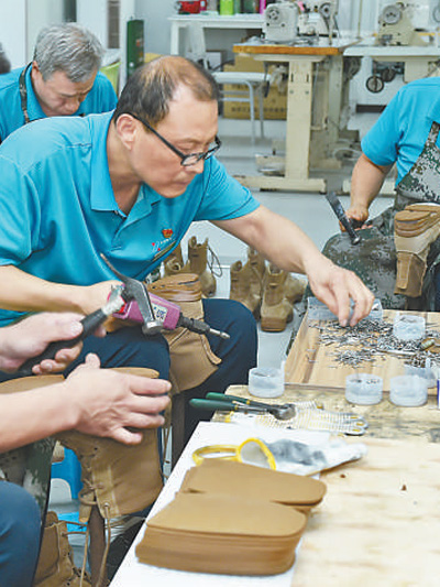 9月17日,保障人员修补训练中磨损的军靴。本报记者 雷声 摄