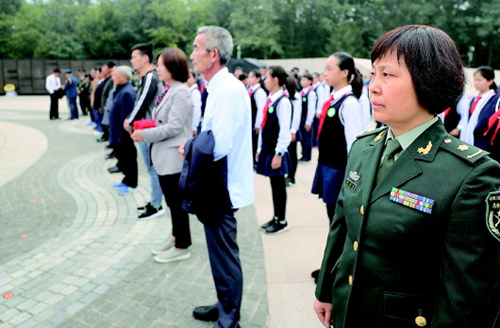 苍松肃立,翠柏静哀。来自社会各界的200多名代表共同见证。