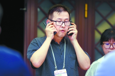 联欢活动指挥部的工作人员在现场指挥。本报记者 张立朝 摄