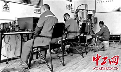 (图为班组职工在集中检测)