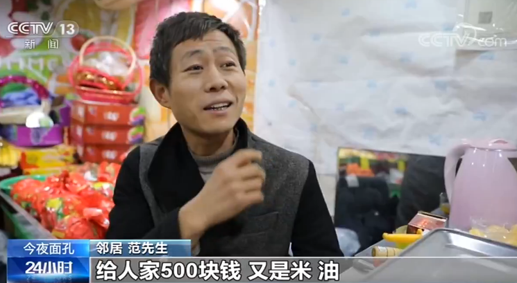 邻居:去年,这边上着火了,给人家500块钱、米、油,帮助人家。