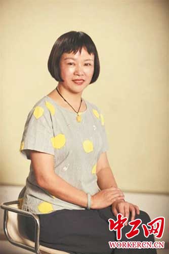 李幼琴在她的工作岗位(影雕车间)创作