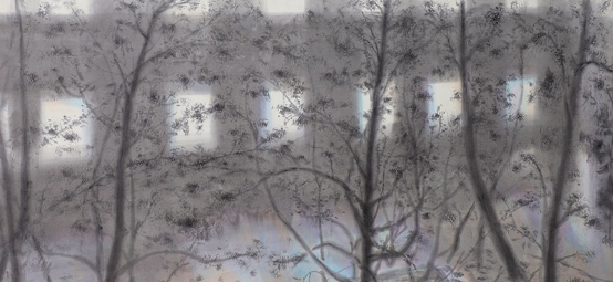 我试图减弱作品中知识经验导致的过分雕琢,画面里呈现出来尽可能的是精心筛选后关于内心最原始的直觉感受。作品的具象形式在转换为更深层次精神指向过程中很多语言都是失效的,它需要的不仅仅只是知识和技术,直觉和本能的感受力也是艺术创作最重要的元素。它必须依靠我们的直觉去感知,在某种程度上它可以被发现甚至被改变。这个大千世界拥有无限的景象和细节,但当自己意识完全安静下来的时候,我发现所有的细节全部转化为非常完整的、放松的片段。所以在此刻水不再是水,山也不再是山,它们成为探寻自我内心的一种载体,我试图通过它们去重新审视自己和世界之间的关系。