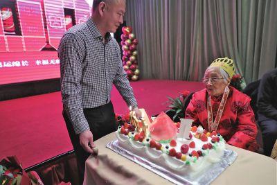 “来啦!来啦!”上午11时许,当身穿红装、头戴红帽的吕秀贞老人被家人用轮椅推着来到庆典现场,早早等候在此的晚辈们高兴地迎上来,簇拥在老人身旁。