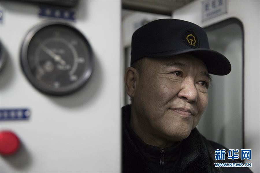 1月10日,张德林在车厢里检查设备。 新华社发(张涛摄)