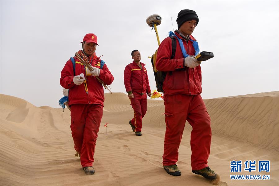 为了减少负重,出工时他们只带上一点点食物和水,轻装翻过一个又一个沙丘,力争在天气好的时候多完成一些测量任务。“就怕遇到风沙,我们插下的小旗子就会被风沙淹没。”每天,周国燕都祈祷不要刮风,“早点完成任务,我们就能早点回家陪陪孩子。”