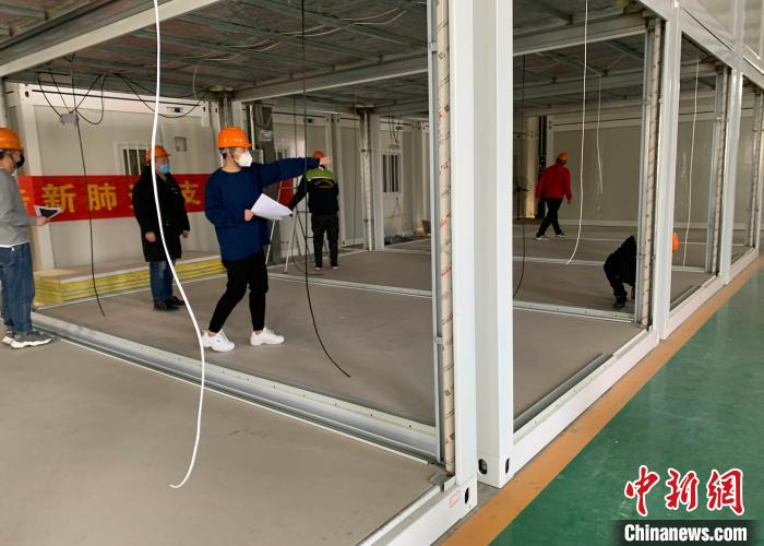 图为河北一木集成房屋科技有限公司技术人员正在根据火神山医院图纸调整施工工艺。 宋敏涛 摄